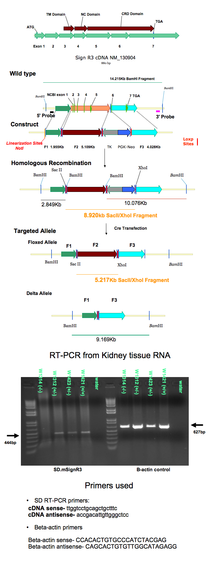SignR3 is one of five murine equivalents of human DcSign (Dendritic cell-specific ICAM-3 [intracellular adhesion molecule-3] grabbing non-integrin). It is localized on mouse chromosome 8 in a cluster with three other related genes: SignR1, SignR2 and SignR4, and in the vicinity of mouse DcSign.